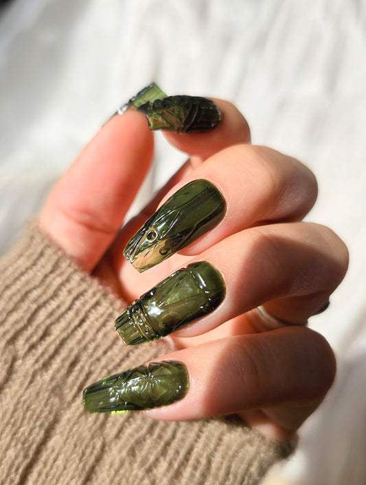 Avocado Green Vintage Glass Press On Nails